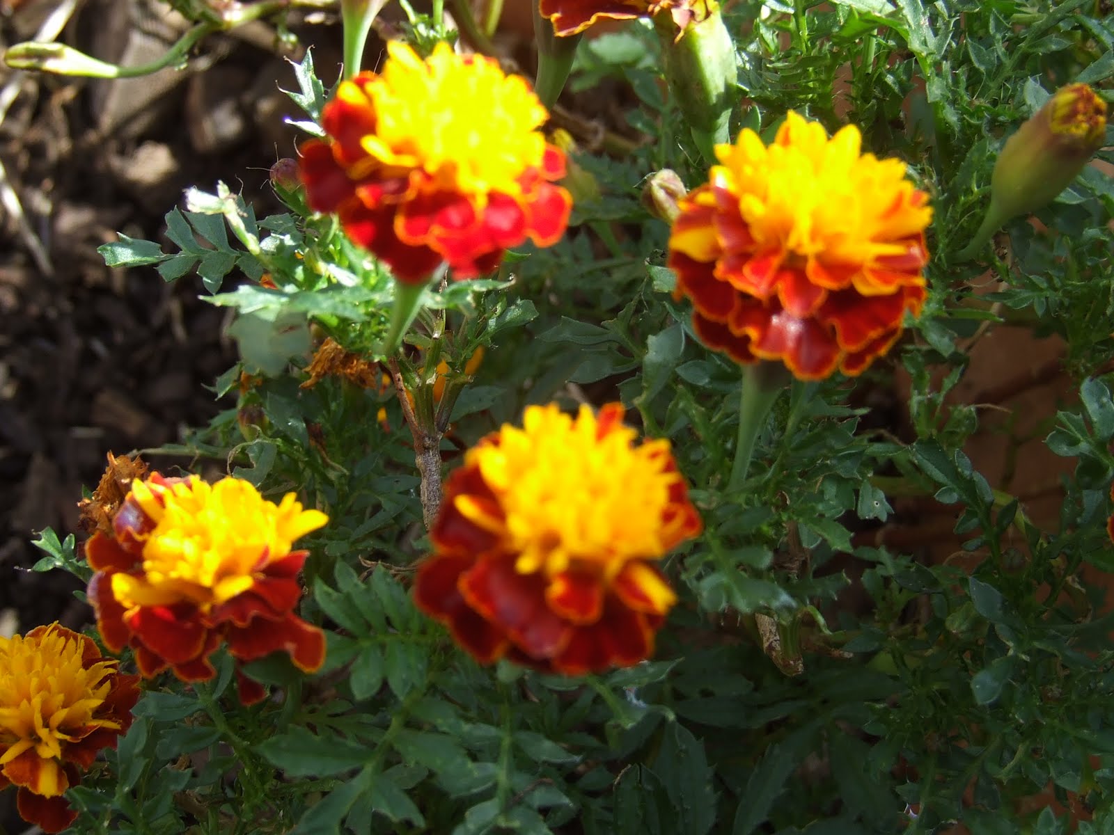 My lovely marigolds which is one of my favourite flowers. This variety has been self seeding in the same pot for three years running and is now sprouting seedlings for a fourth season. A sprinkle of blood and bone each spring, and they go crazy and bloom for most of the year.