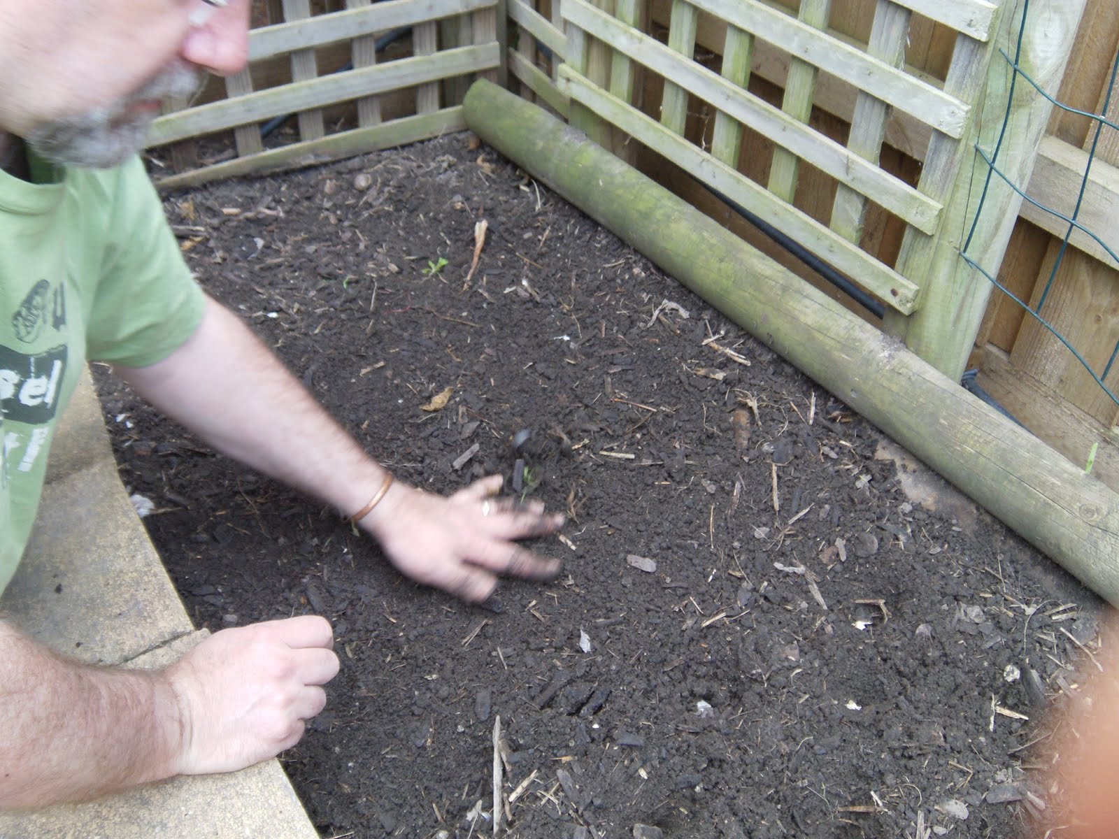 Then just smooth over the soil with my hand. Simple as pie.