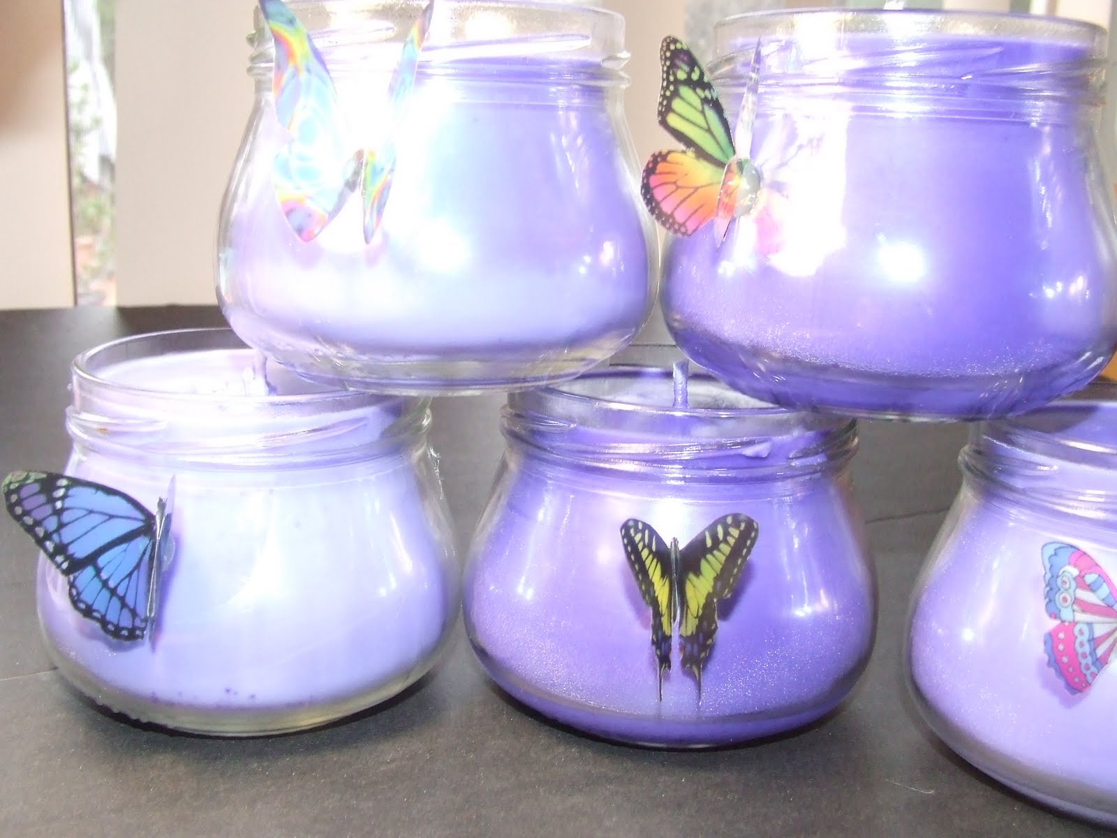 Your candle adventure went well! They look stunning with the butterflies added to the side.