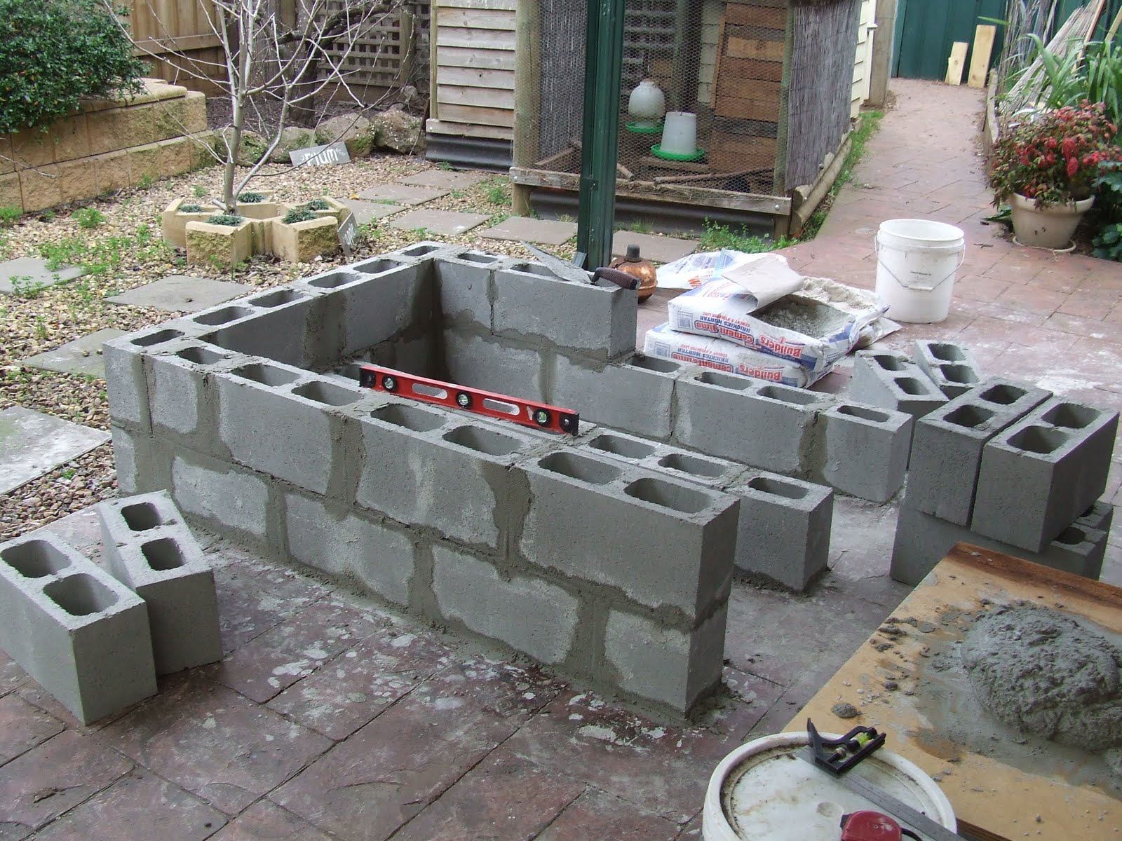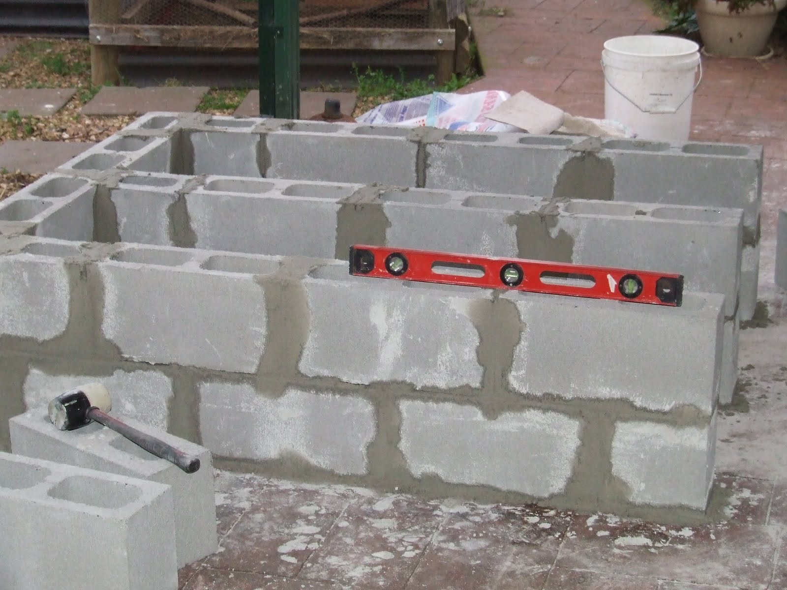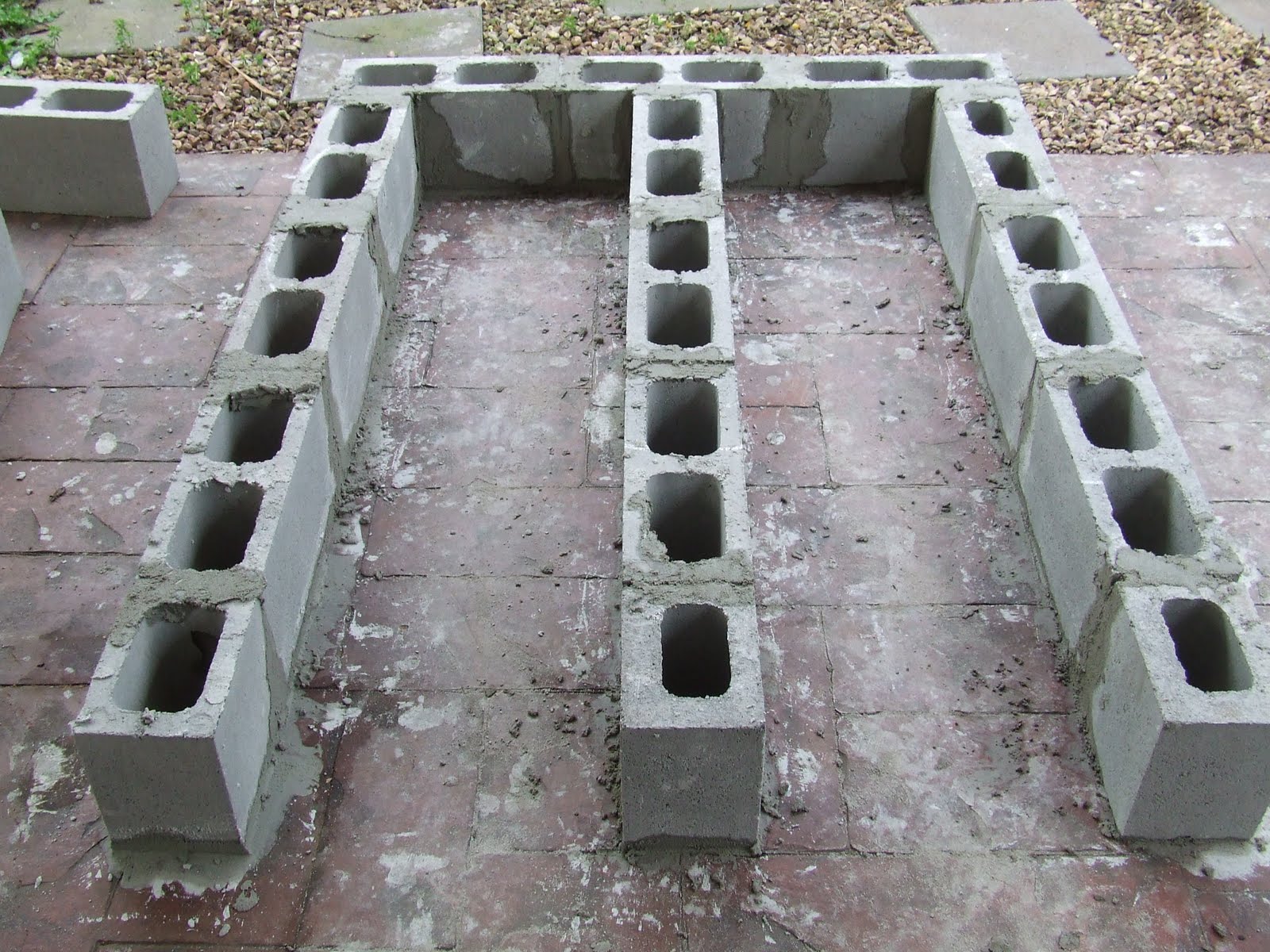 The materials. Breeze blocks, 40cm x 15cm and about 14 half bricks