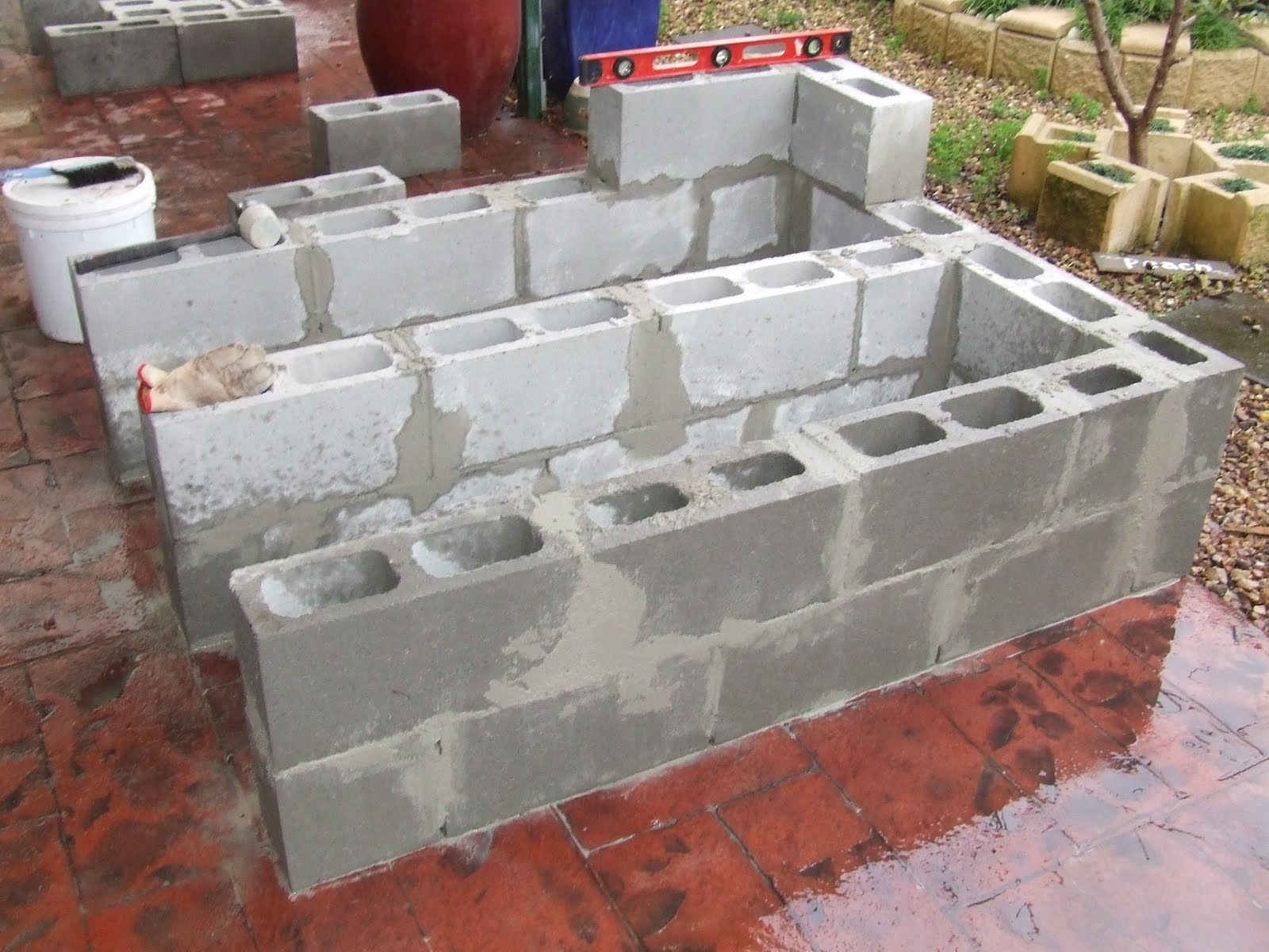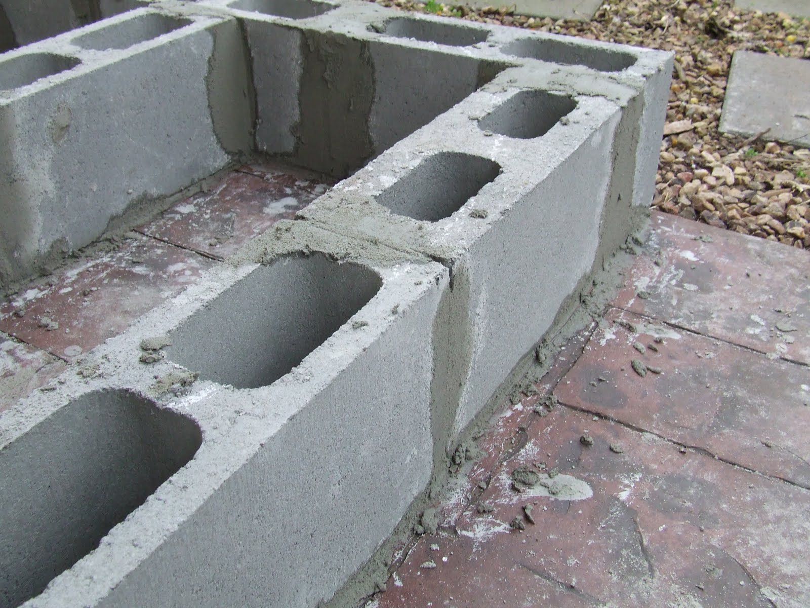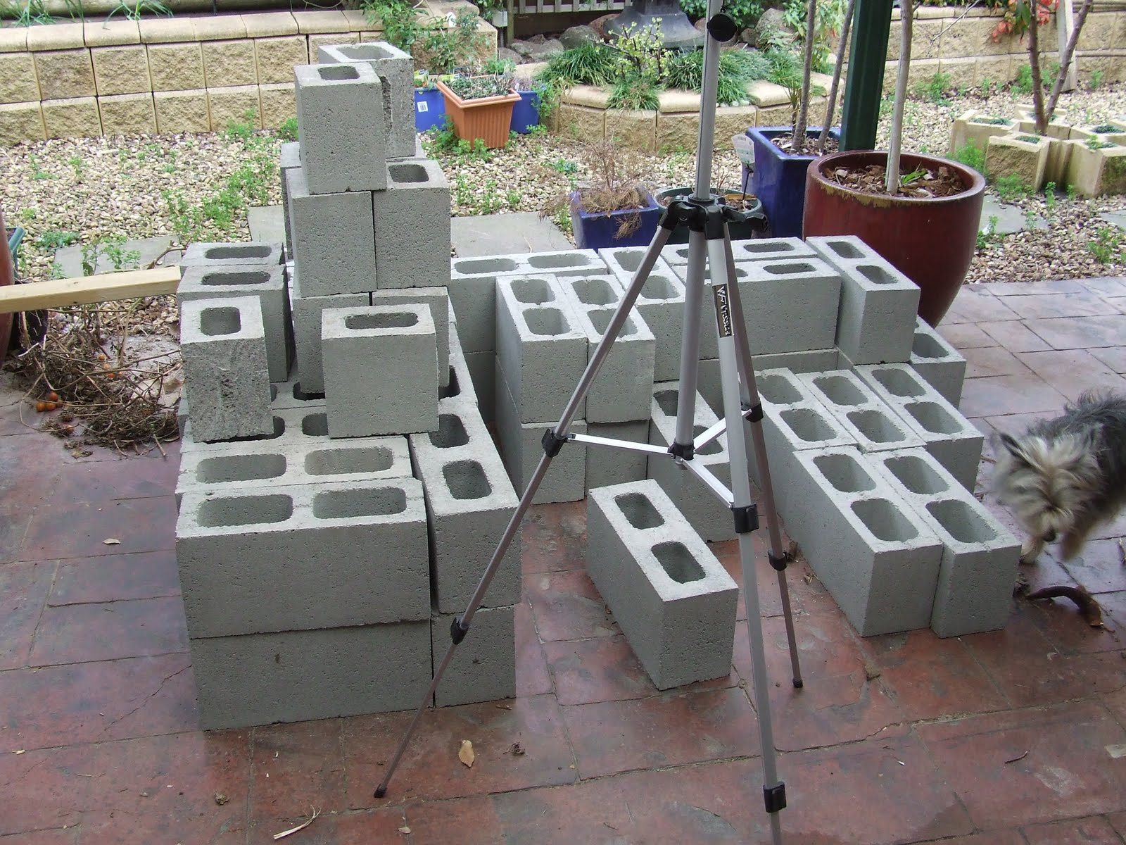 The materials. Breeze blocks, 40cm x 15cm and about 14 half bricks