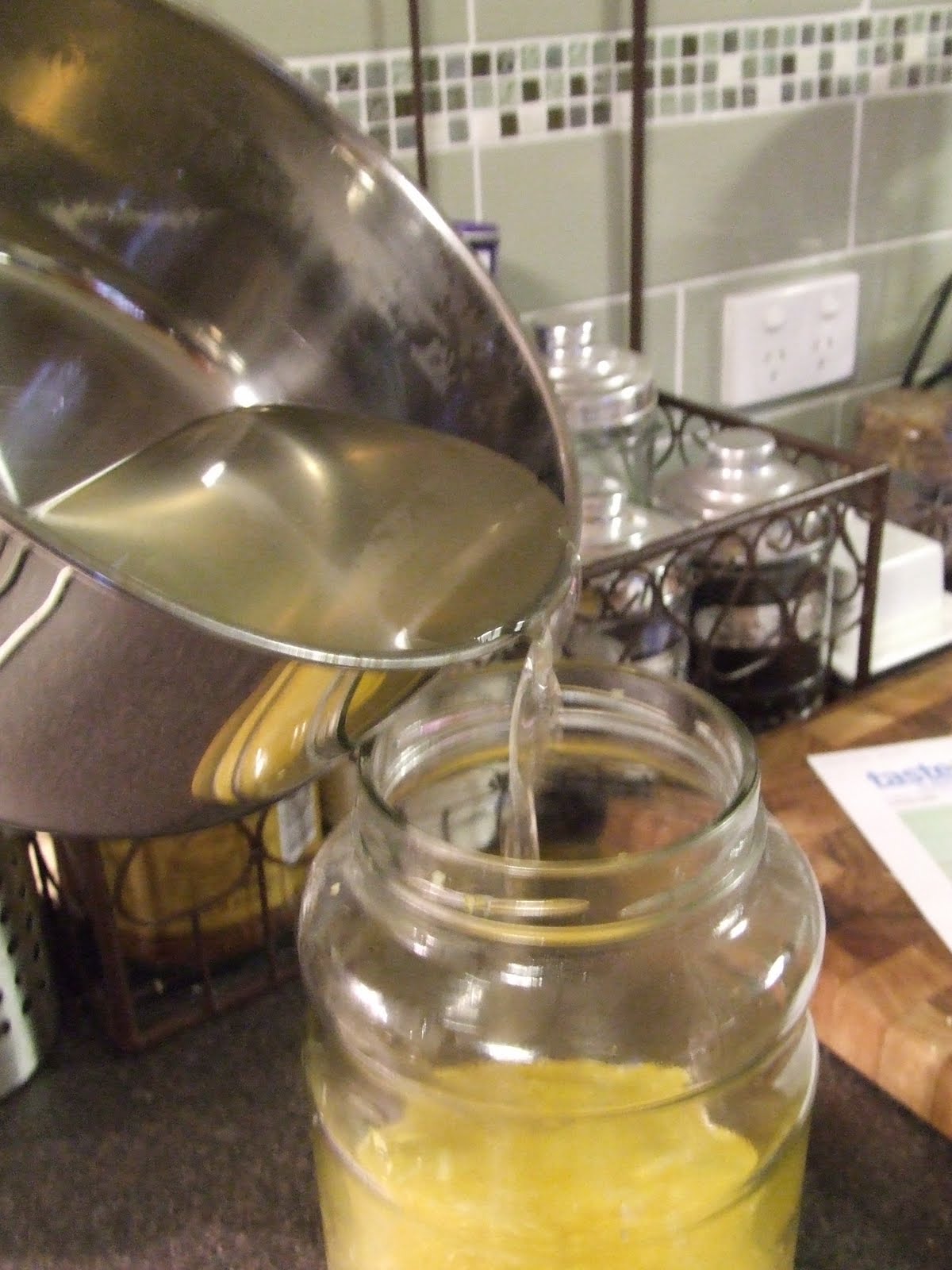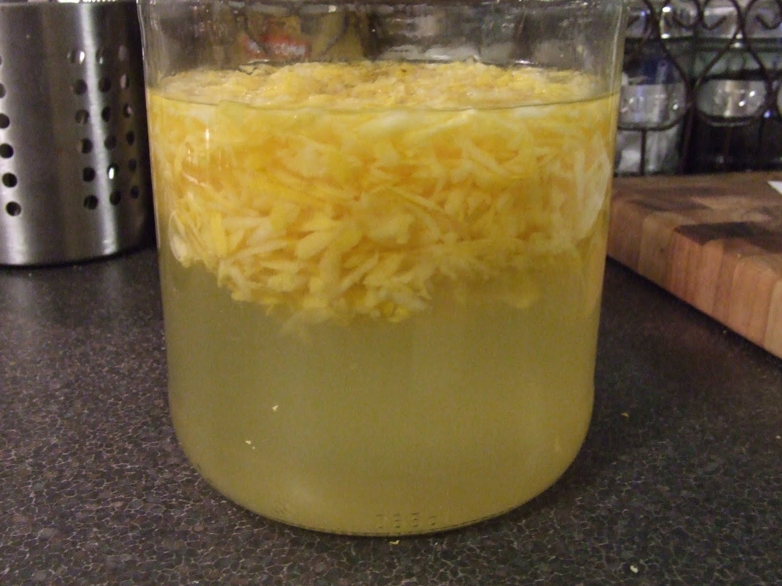 My syrup cooled after two hours, so I gently poured it into the rind/vodka mixture.
