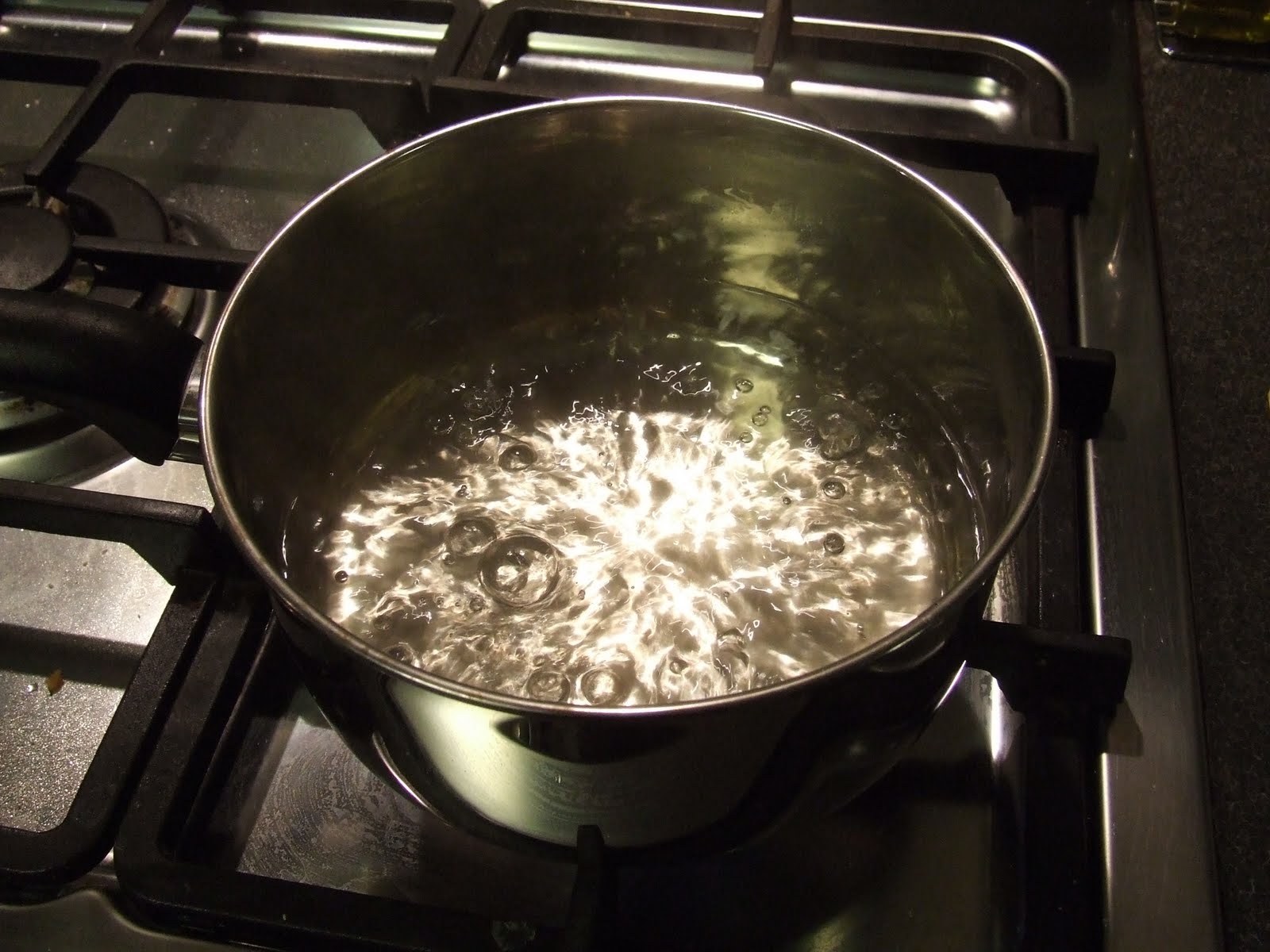 So add the sugar and water and stir whilst heating on a medium heat. Bring to the boil.