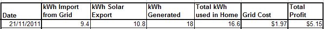 PS I am in Qld with the PV net feed in tariff. Is that the same as you? Ours pays 50c per kWh. I changed the column to 50 cents but it still calculated me a daily profit $800!! Now that’s a solar bonus.