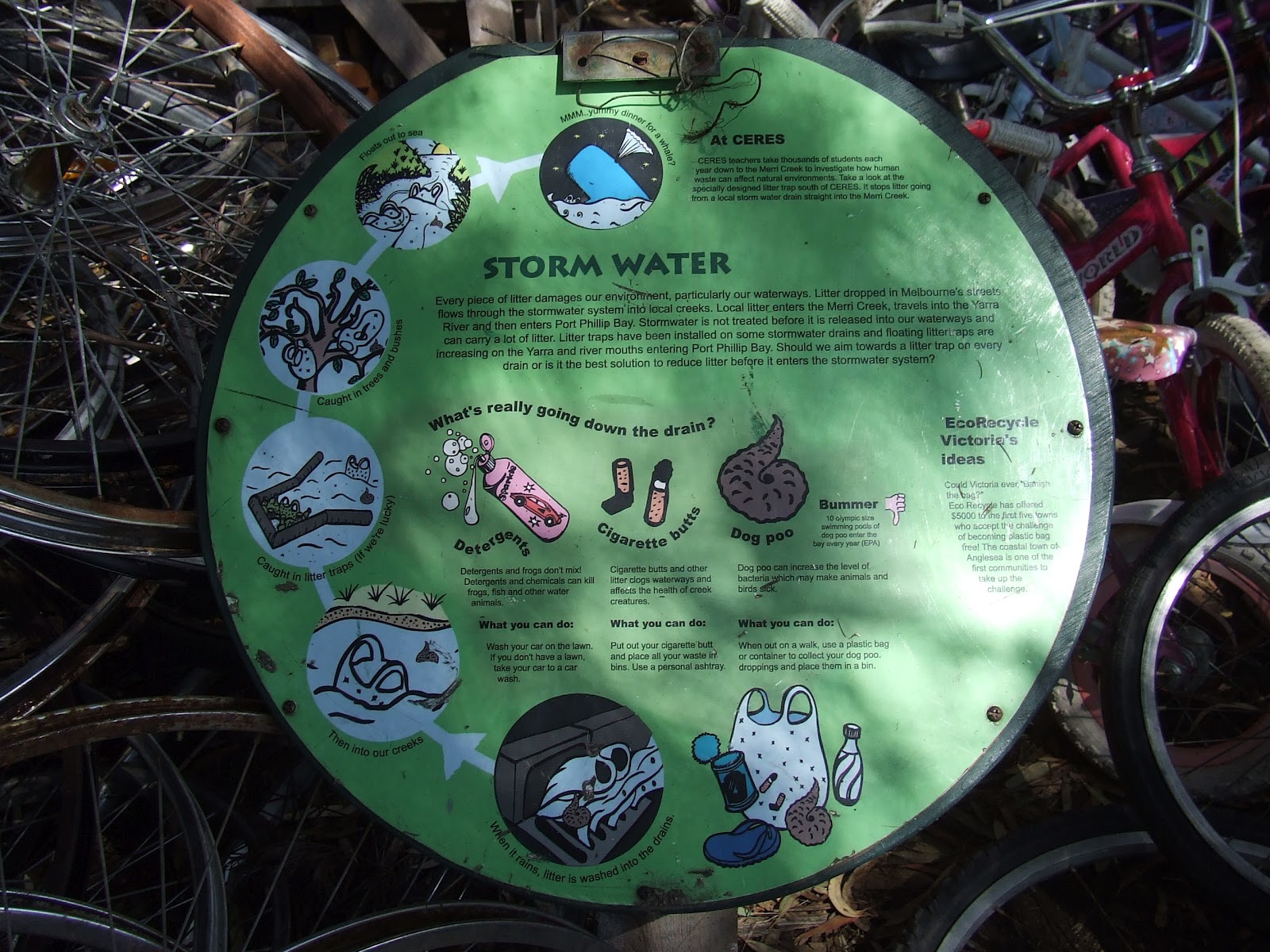 This sign told us all about storm water and what gets washed into the sewers and local waterways.