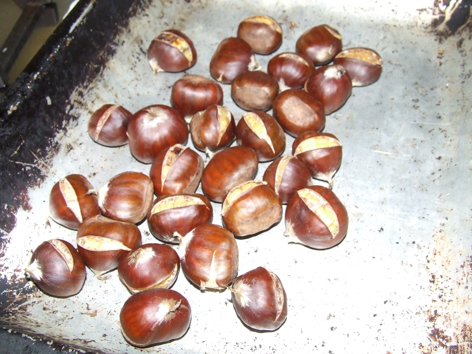 Now remembering the black, sooty fingers on my last encounter, I decided to scour the net in search of an easy, clean method of roasting chestnuts in our kitchen oven. I found one, and this is how I went about it.