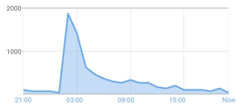 As you can see by the graph, it was an amazing jump in readership. Being a bit of a stats fan, this blog usually has between 40-100 page views and hour, so to get over 1900 in a single hour was amazing.