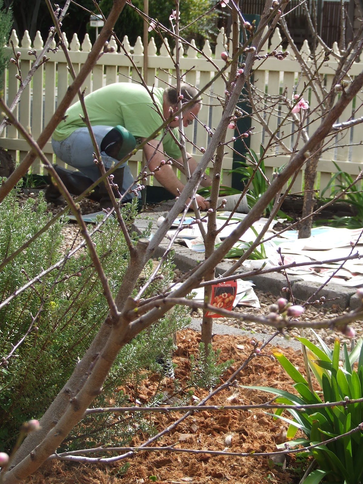 This bed was covered in golden oxalis (soursobs), and were sucking the moisture out of the soil. As the peach and nectarine trees in this bed are now bursting into blossom, it was well worth the effort.