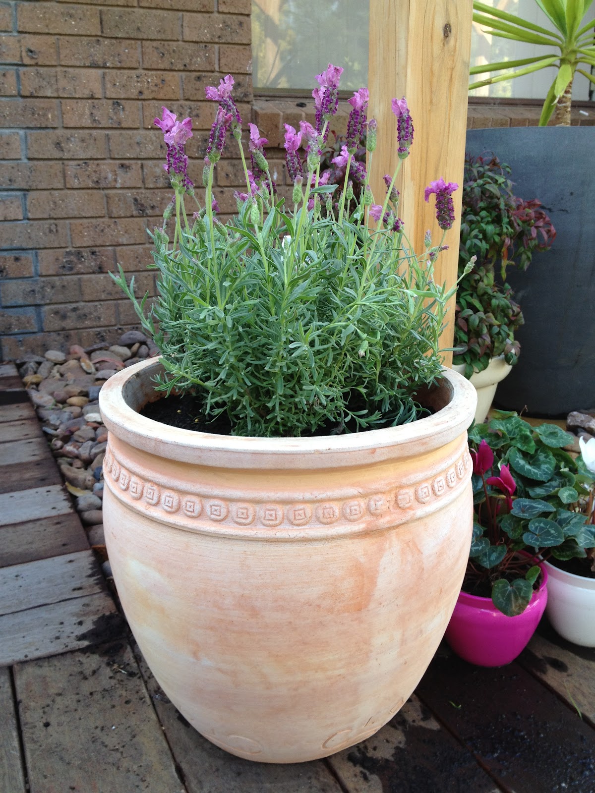 Also on the dutiful husband side of planting, I potted up three Princess Lavender for her in this nice terracotta pot. They smell wonderful as you brush past them. Kim is getting more confident with looking after plants, and has a growing collection of lavender and succulents in pots just outside her office door.