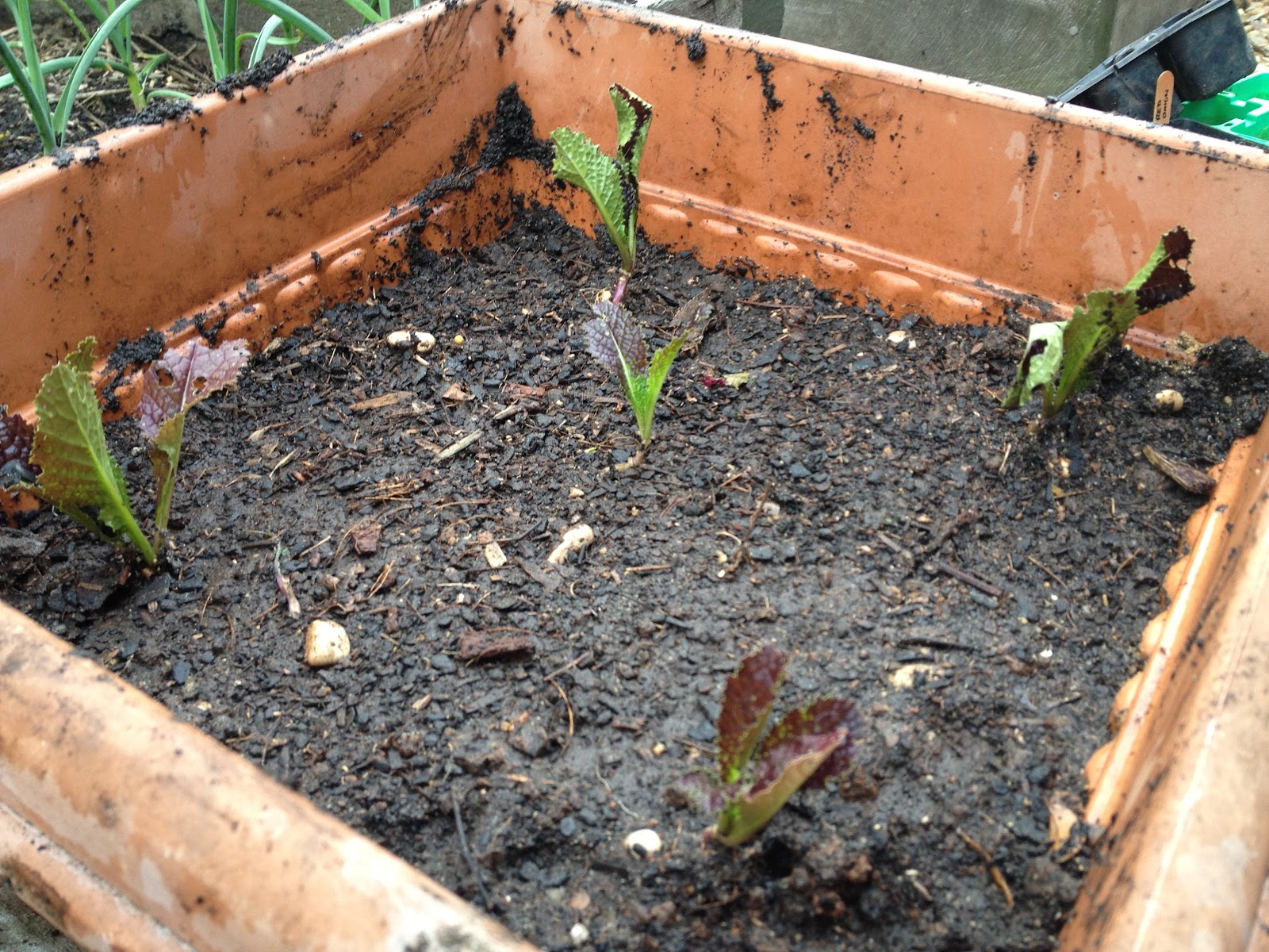 In total we planted the following vegetables; scarlet globe radishes, Lettuce freckles bunte, red deer tongue, Italian lollo mix, mesclun mix, wild arugula, and flame lettuce. I think Ben was pleased with his work.