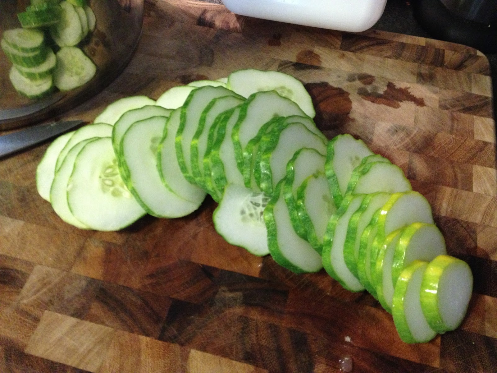 This preserve was made by my mother when I was a wee lad, and I have made a batch each year since I first started growing cucumbers five years ago. This is one delicious preserve, ideal, as the name suggests, in bread and butter sandwiches.