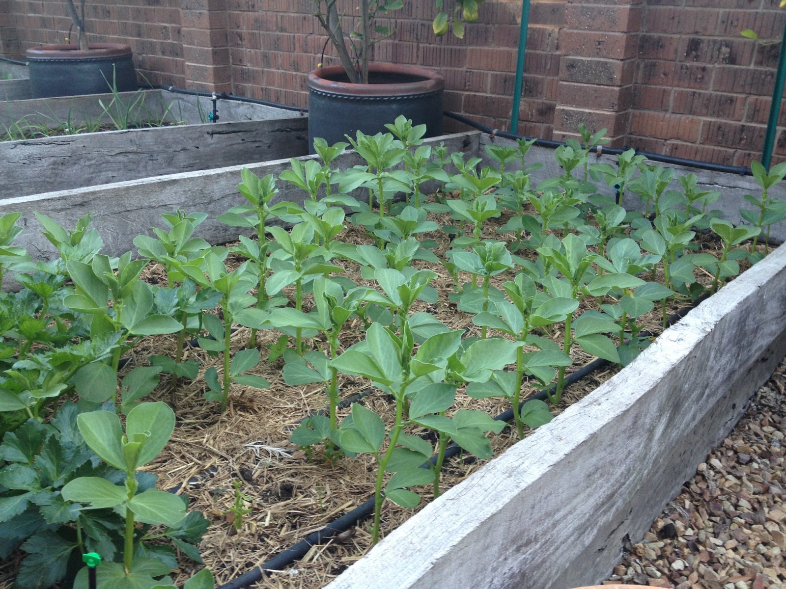 The Broad Beans (Fava) are slowly but surely inching their way to their normal 1.8 metres (6ft). Hopefully, we will not have broad bean rust like last season.