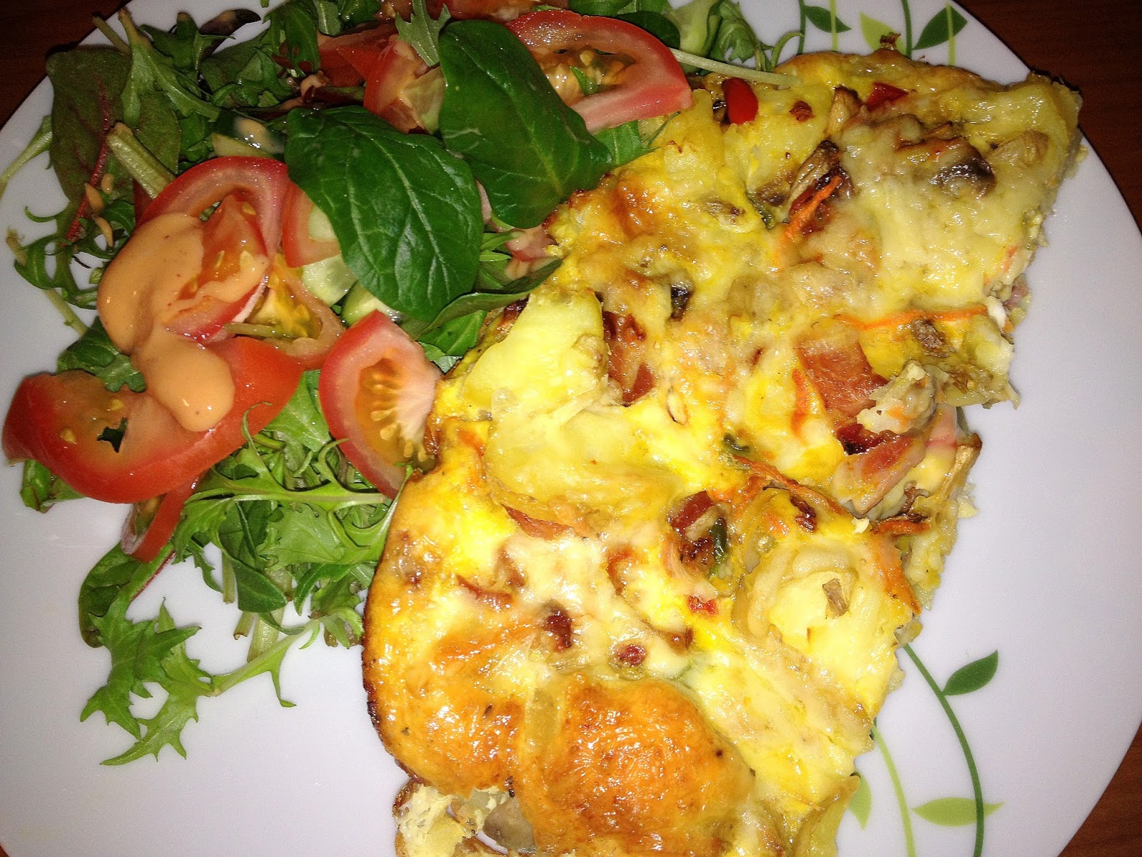 So what have we been doing with all these eggs? Well we sell a dozen here and there, but mostly eat them. Last week Ben, during cooking class, made Kim and I dinner in the form of a Frittata with a salad. This took up 8 eggs.