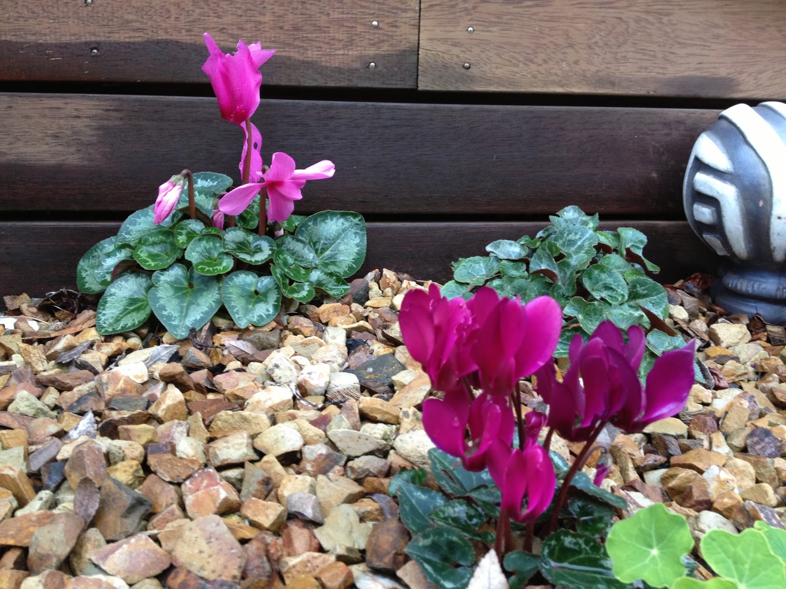 I can’t get over the beautiful cyclamen that pop up all over your garden like, well, like weeds. I’ve only ever seen them here in pots in florists’ shops. Somebody gave me one once but it didn’t last long. Very hard to give them the conditions they prefer inside the house.