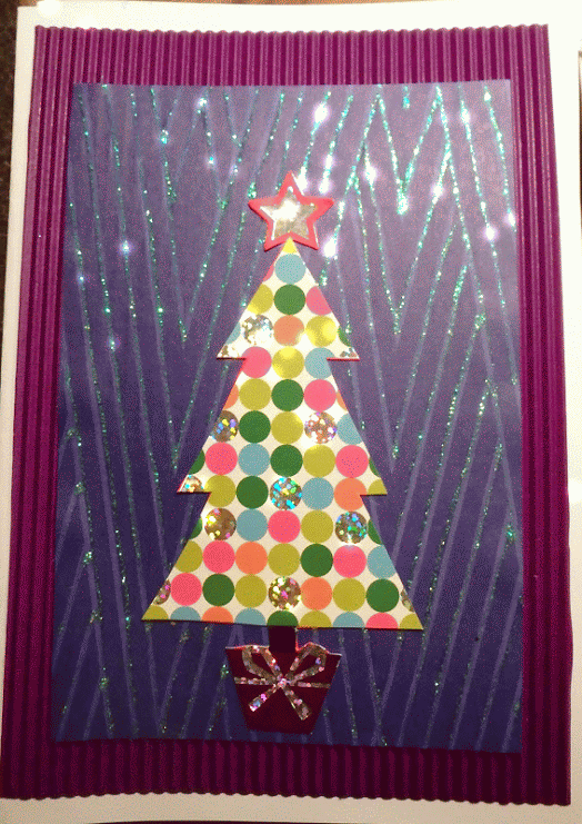 Another cool thing that we do each year is make our own christmas cards. Kim has been very busy upcycling old christmas cards and making new ones out of them. Each year she keeps all the cards that were sent to us and puts them away for the next season. Then in a mad frenzy about two weeks before Christmas Day, she gets out bits of old plain card, fabric, glitter pens, and all sorts of crafty stuff, then gets to work.